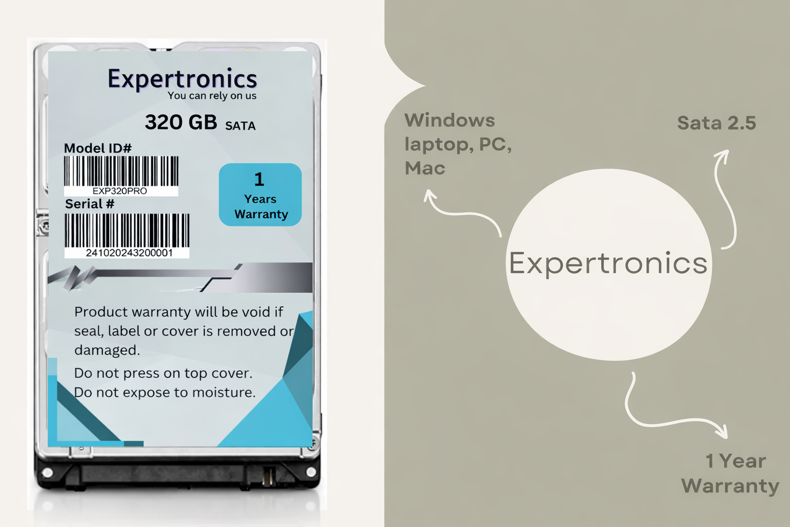 Expertronics PRO 320GB SATA Internal Hard Disk Drive (HDD) | EXP320PRO | Compatible with Laptop, Desktop & All-in-One PCs | Silver