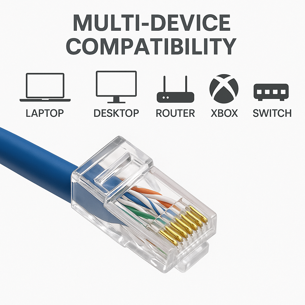 Get fast, stable, and reliable internet connectivity with our RJ45 Cat6 Ethernet Connectors, designed for precision and performance. Each connector is equipped with gold-plated 3-point contacts that ensure superior conductivity and corrosion resistance, providing faster and more stable data transmission. With their strong signal retention, you’ll enjoy consistent network performance up to 10 Gbps—perfect for gaming, streaming, or professional networking applications.
